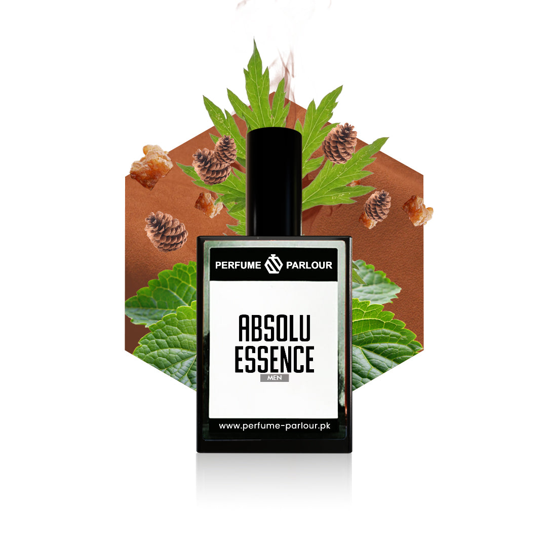 Absolu Essence is a refined woody aromatic fragrance crafted for men who appreciate depth, elegance, and modern sophistication. It opens with a bold and smoky fusion of incense and leather, setting a powerful tone. The heart unfolds with the earthy richness of patchouli and the resinous warmth of myrrh, adding complexity and depth. The scent settles into a smooth and woody base of cedarwood and davana, leaving a long-lasting and confident trail.